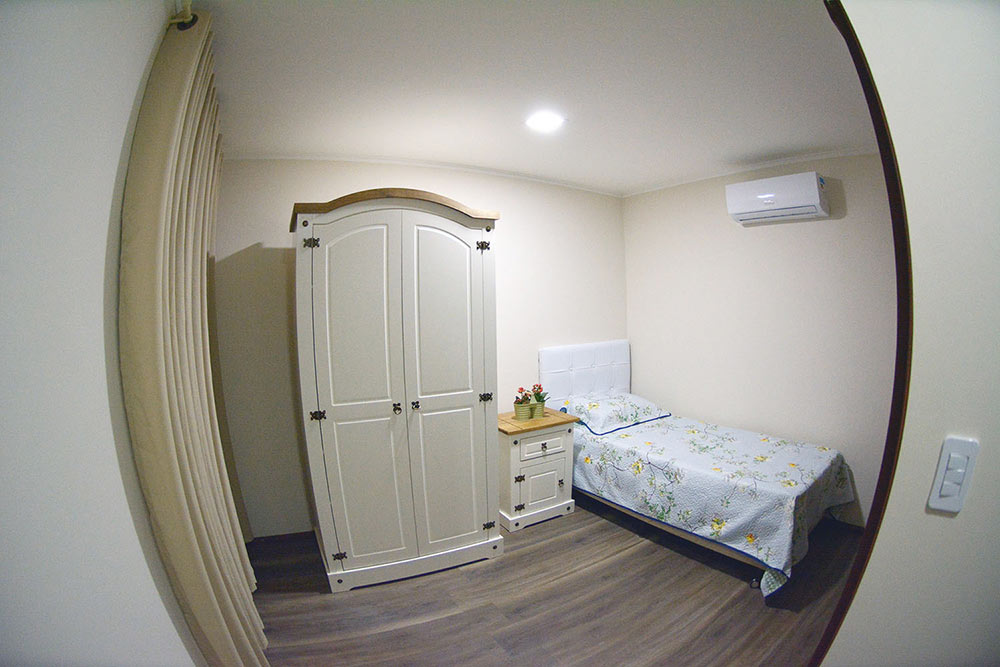 Todos eles possuem cama, roupeiro, criado mudo e ar condicionado.